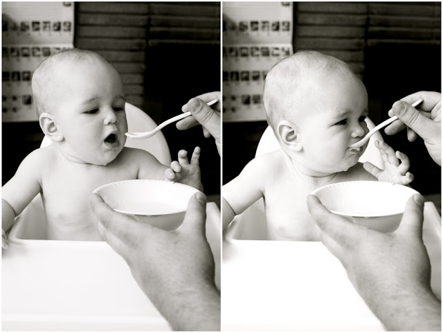 So I thought I would start off the year properly by playing catch up on all the posts I meant to do last year. And to start us off, Hudson and his first rice cereal experience, capped off with a rousing game of where's-the-binky.